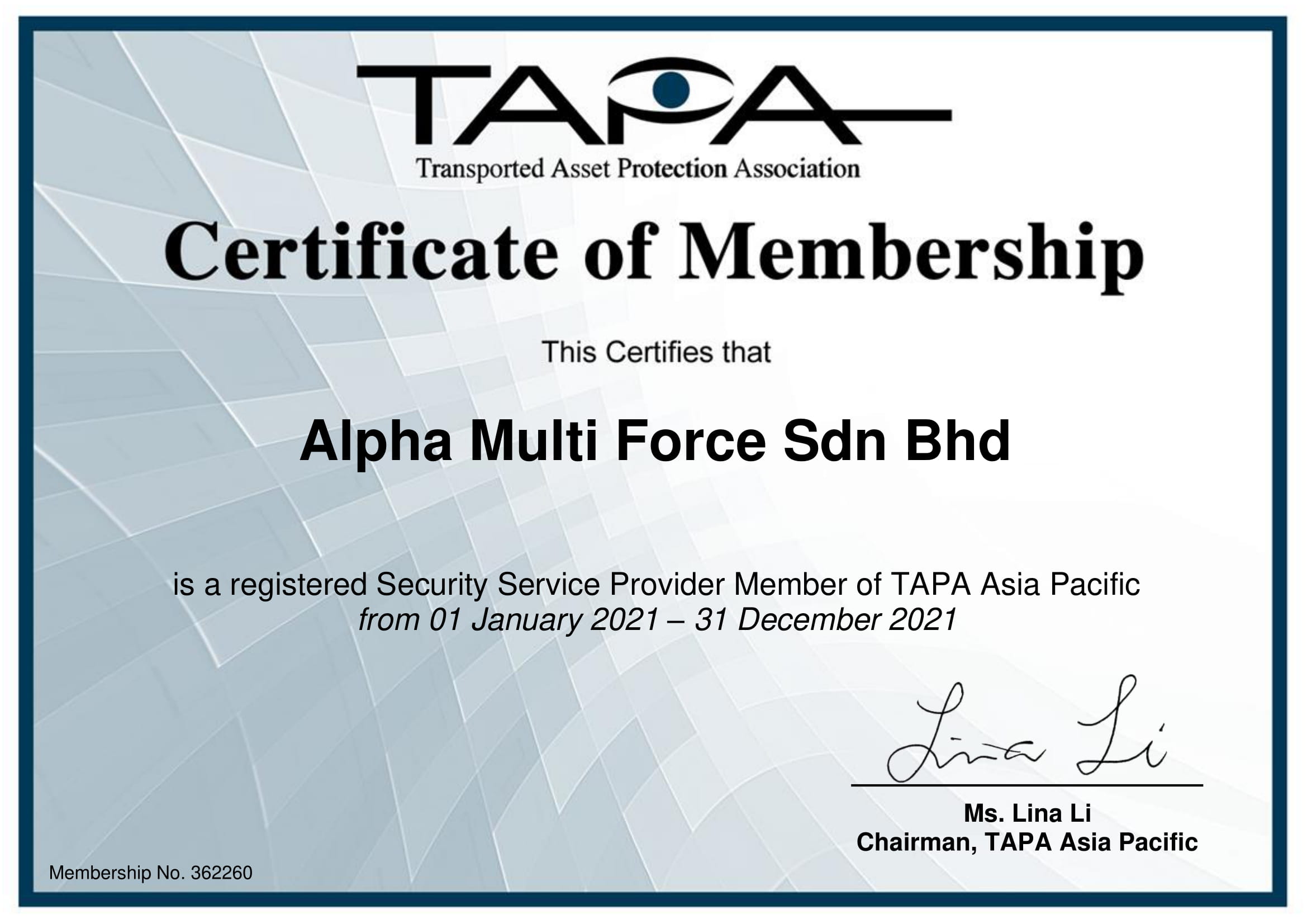 Our Certificate